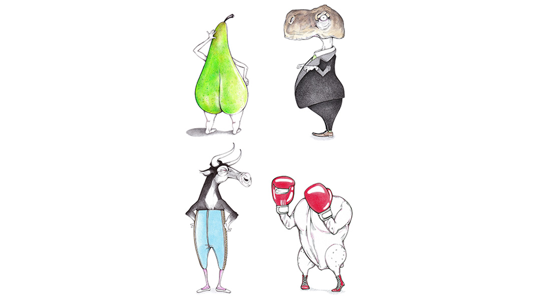 Der Münchner Zeichner Julian Opitz ist ständig auf der Jagd nach kuriosen Figuren – und kuriosen Titeln. Seine mit Tusche und Buntstift zu Papier gebrachten Arbeiten setzen Pointen in Wort und Bild. Sie entstehen beim beständigen Spiel mit Formen und Worten: Menschliche Mimik und Körperhaltung, tierisches Gebaren, Gegenstände, klangvolle Begrifflichkeiten – all diese Eindrücke werden zeichnerisch miteinander verbunden. Im Ergebnis entstehen Mischwesen, die gesellschaftliche oder politische Stereotypen karikieren, Alltagserfahrungen kommentieren und häufig eine satirische und kritische Stoßrichtung haben.